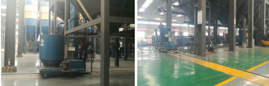 由于全自動布料機組不易拍攝,所以用該企業(yè)另一車間的布料機圖片代替。